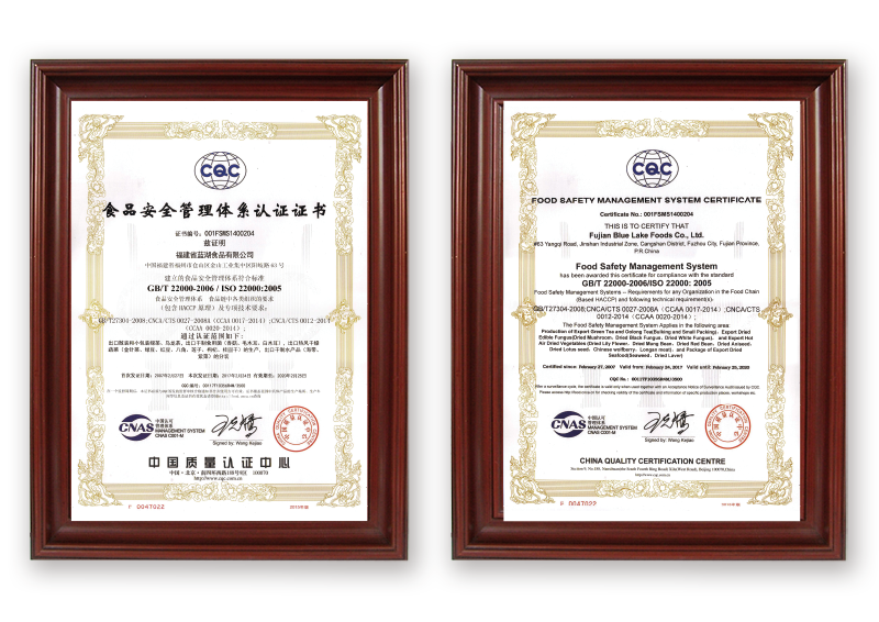 ISO22000食品安全管理体系认证证书